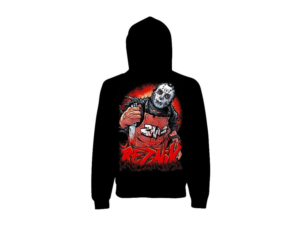 Černá mikina s motivem Řezník ala Jason Voorhees. Designed by: Mr. 8Legz