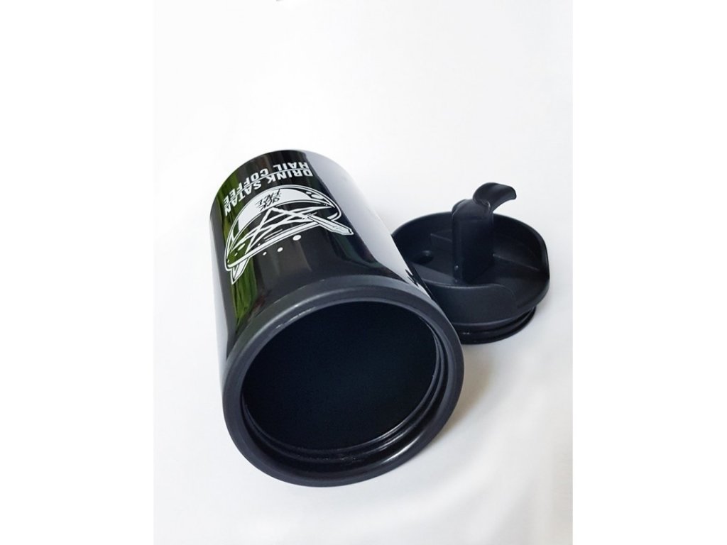 Černý nerezový termohrnek s motivem Drink Satan / Hail Coffee. Objem 300ml.